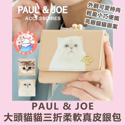 預購|PAUL & JOE大頭貓貓三折柔軟真皮銀包